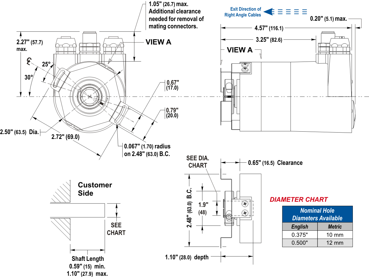 | Shaft Diameter: | Solid shaft 1 = .375" diameter with Flat 2 = .250" diameter with Flat 3 = 6 mm diameter with Flat 4 = 10 mm diameter with Flat Blind shaft hole 1 = 0.375" diameter 2 = 10 mm diameter 4 = 0.500" diameter 6 = 12 mm diameter | 1 (3/8" solid shaft) |