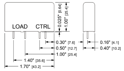 This figure details the dimensions of the listed compatible relays. Other relays must be of the same dimensions to be compatible.