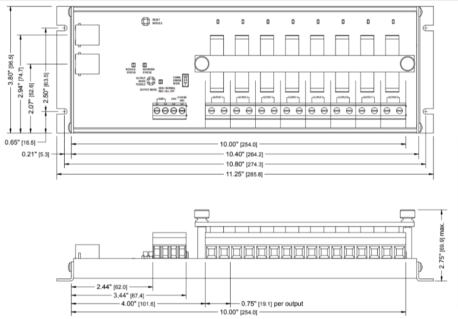 | Input Power | 24 Vdc ± 10%. Requires a maximum of 7.3 watts when all relays are on. (0.3A @ 24Vdc) |